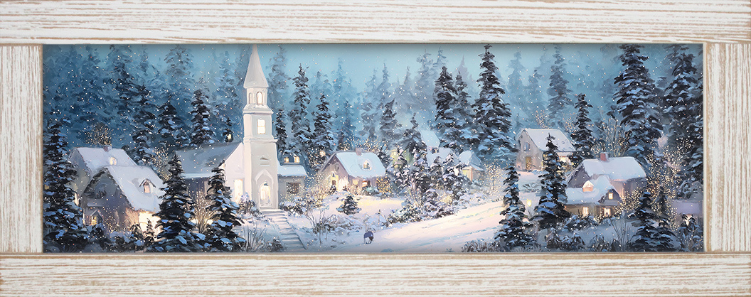 10x24 Horizontal Framed Church & Villiage 1 Art Work