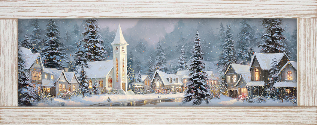 10x24 Horizontal Framed Church & Villiage 3 Art Work