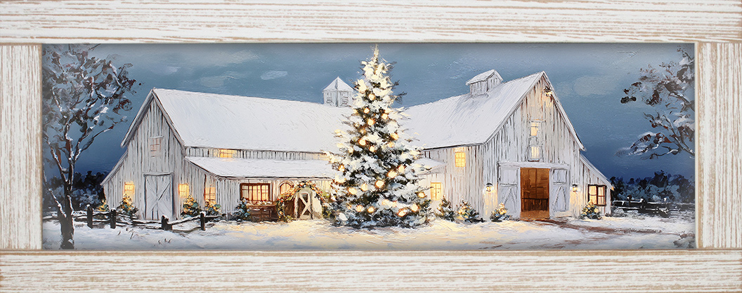 10x24 Horizontal Framed White Barn Art Work