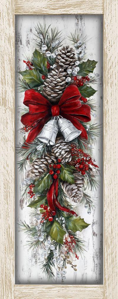 10x24 Vertical Framed Christmas Swag 3 Art Work