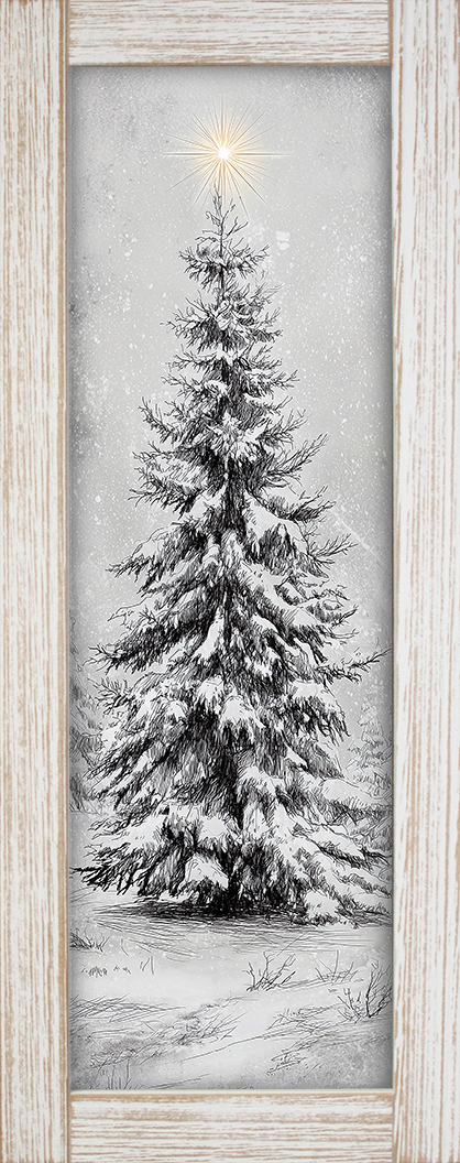 10x24 Vertical Framed Sketch Tree Art Work
