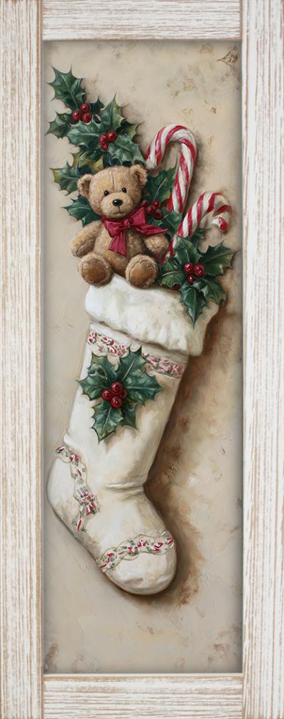 10x24 Vertical Framed White Stocking Art Work