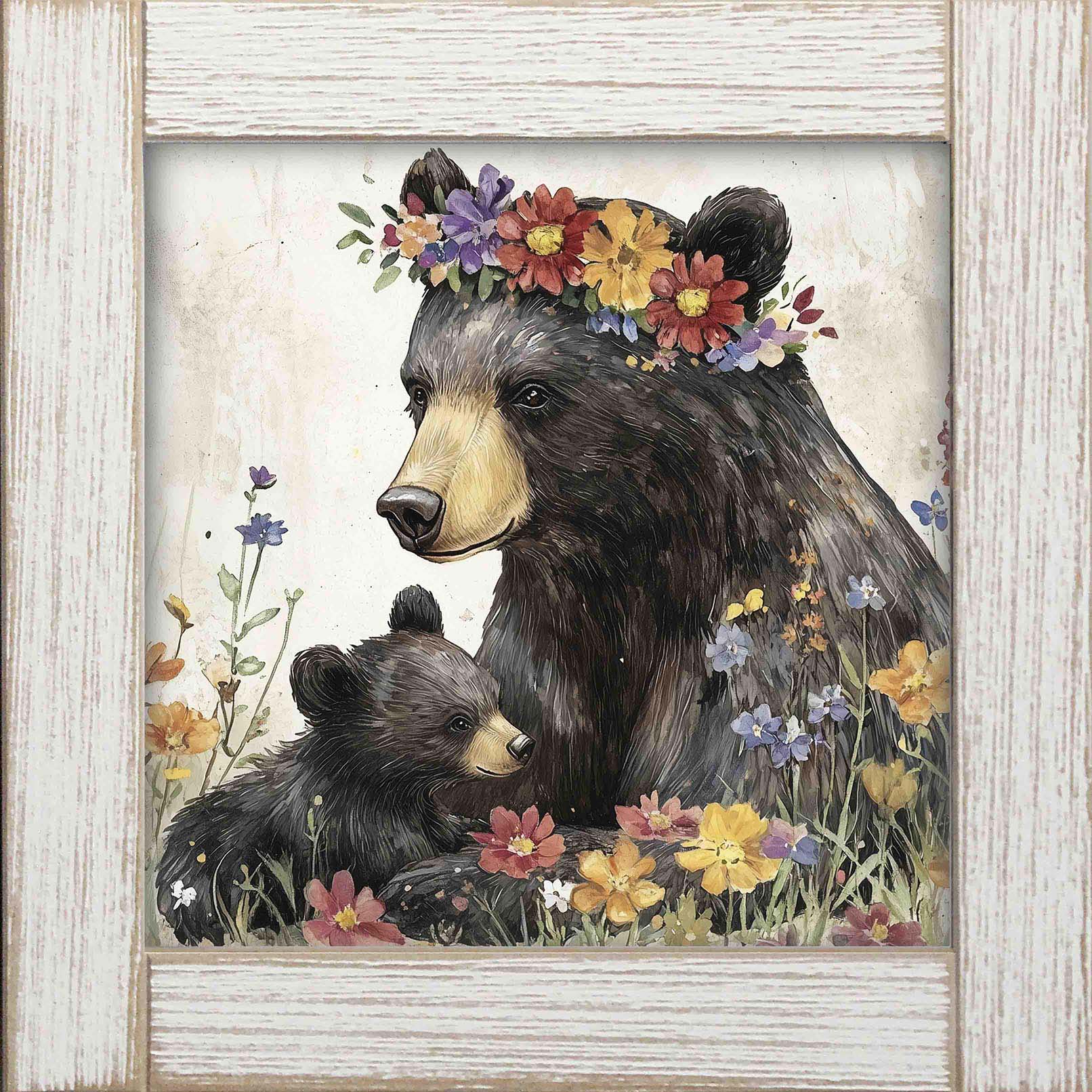 12x12 Framed Black Bear Mama Bear & Cub 2