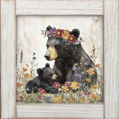 12x12 Framed Black Bear Mama Bear & Cub 3