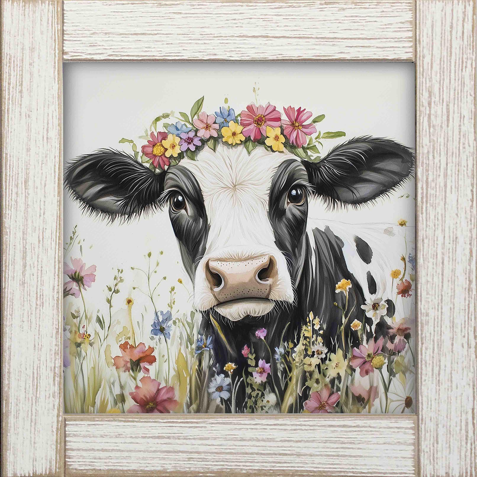 12x12 Framed Black & White Cow 1