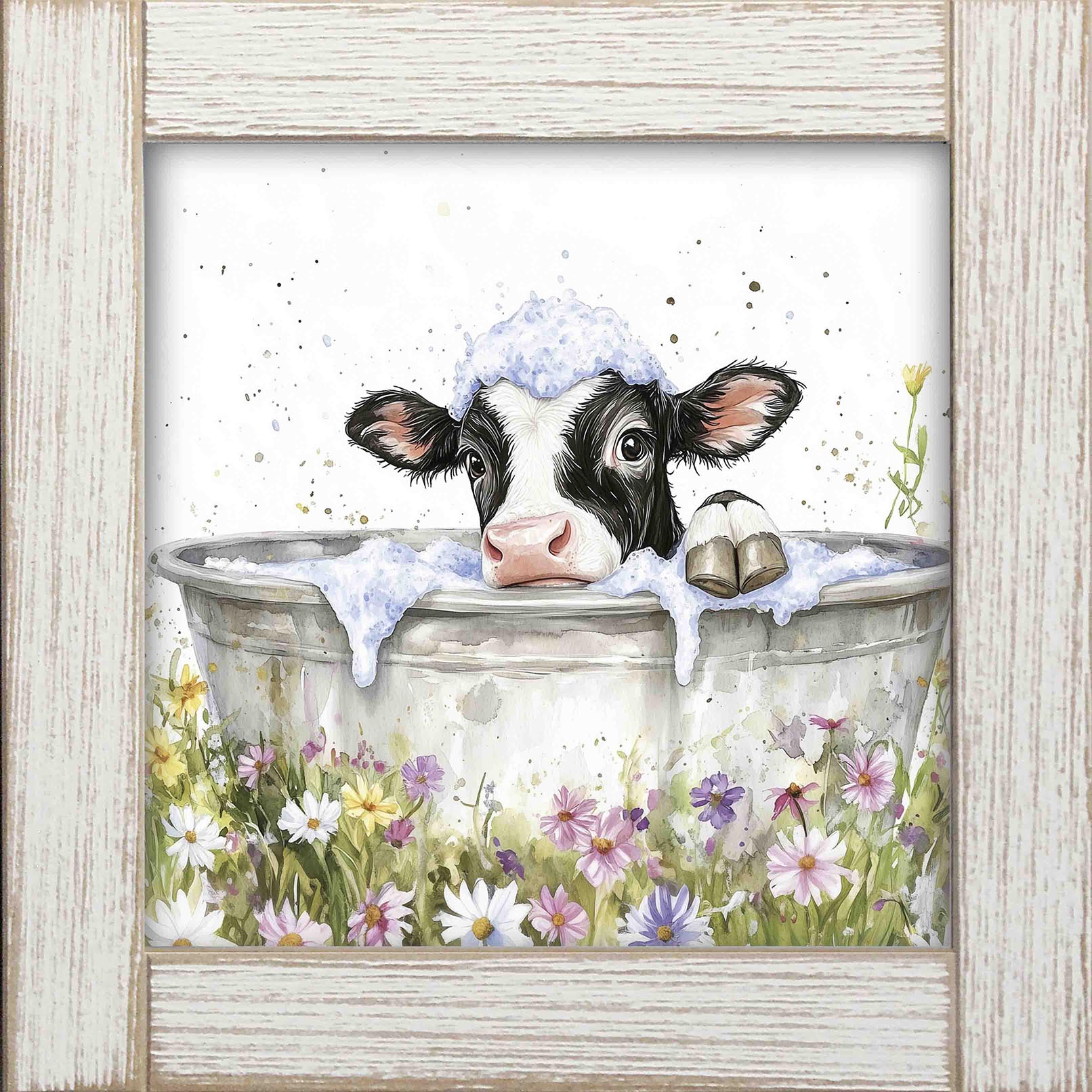 12x12 Framed Black & White Cow Bathing 1