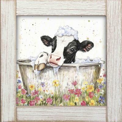 12x12 Framed Black & White Cow Bathing 3