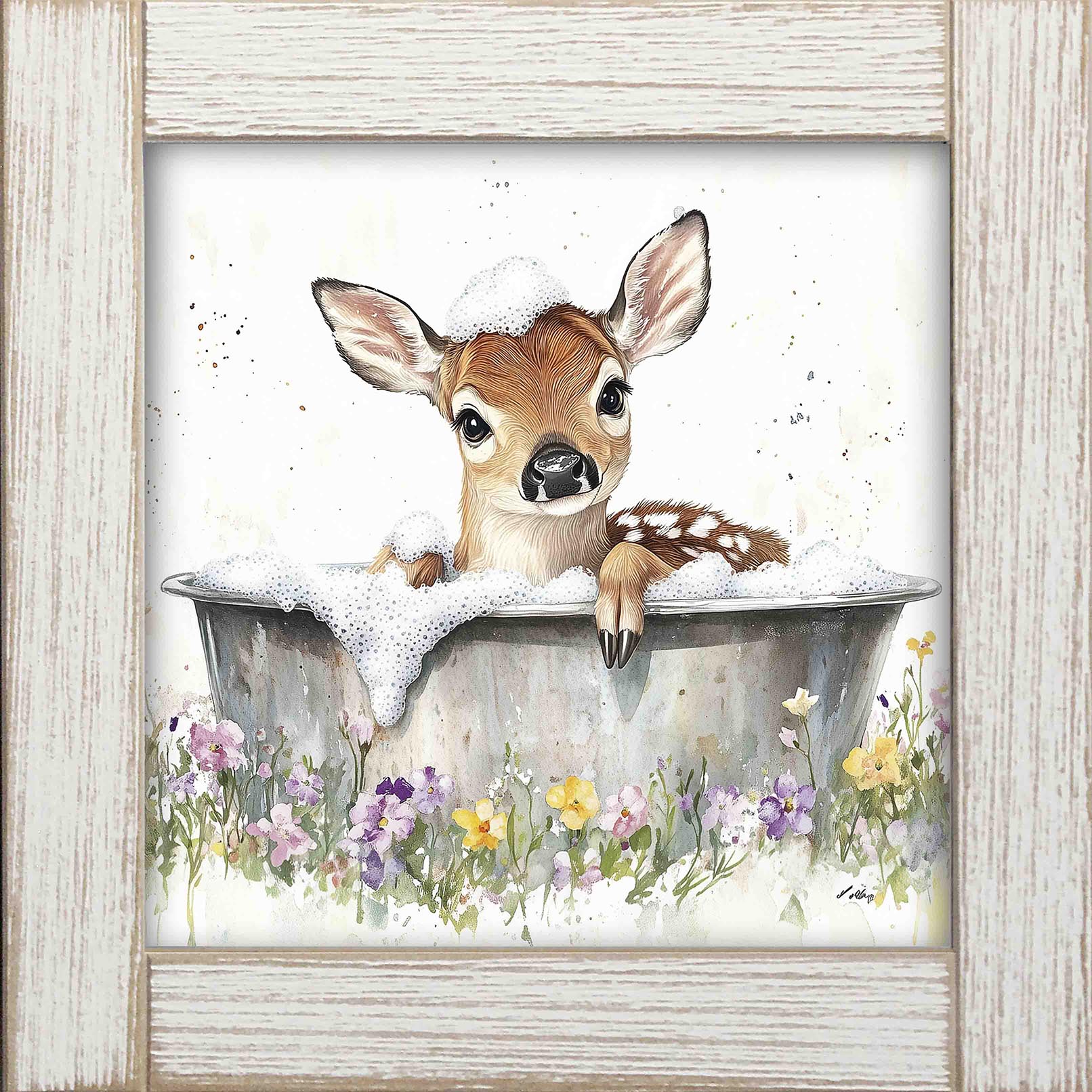 12x12 Framed Fawn Bathing