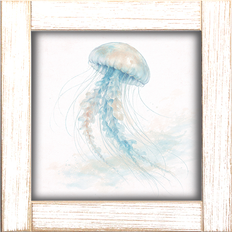 12x12 Framed Jelly Fish Floating Through Water