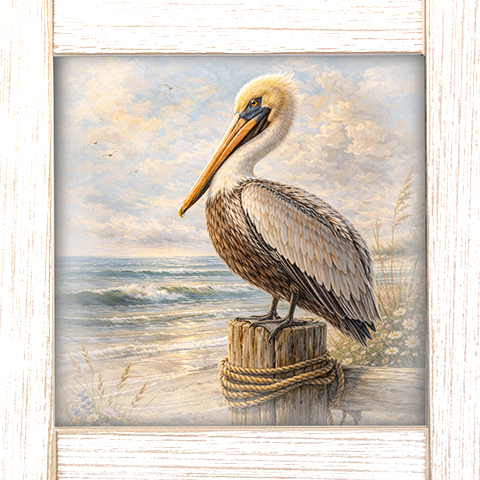 12x12 Framed Pelican With Ocean View 2