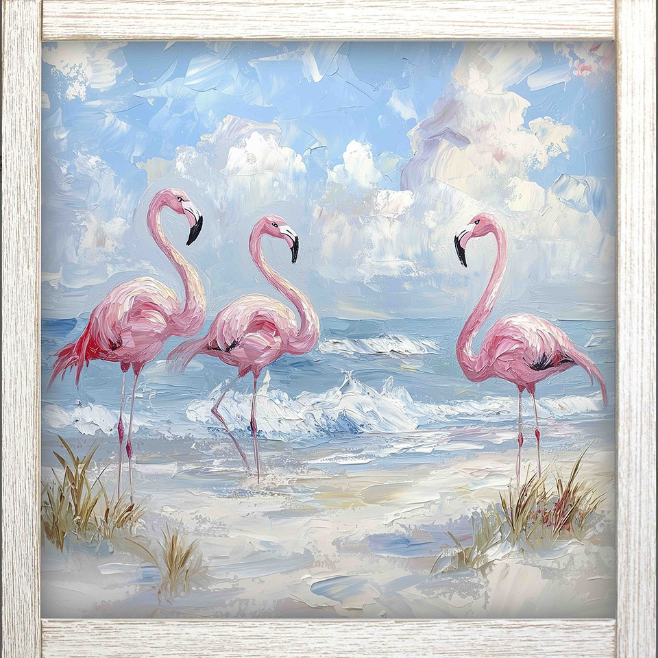 24x24 Framed 3 Flamingos