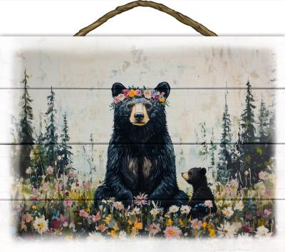 Black Bear Mama Bear & Cub 1 Slat Sign