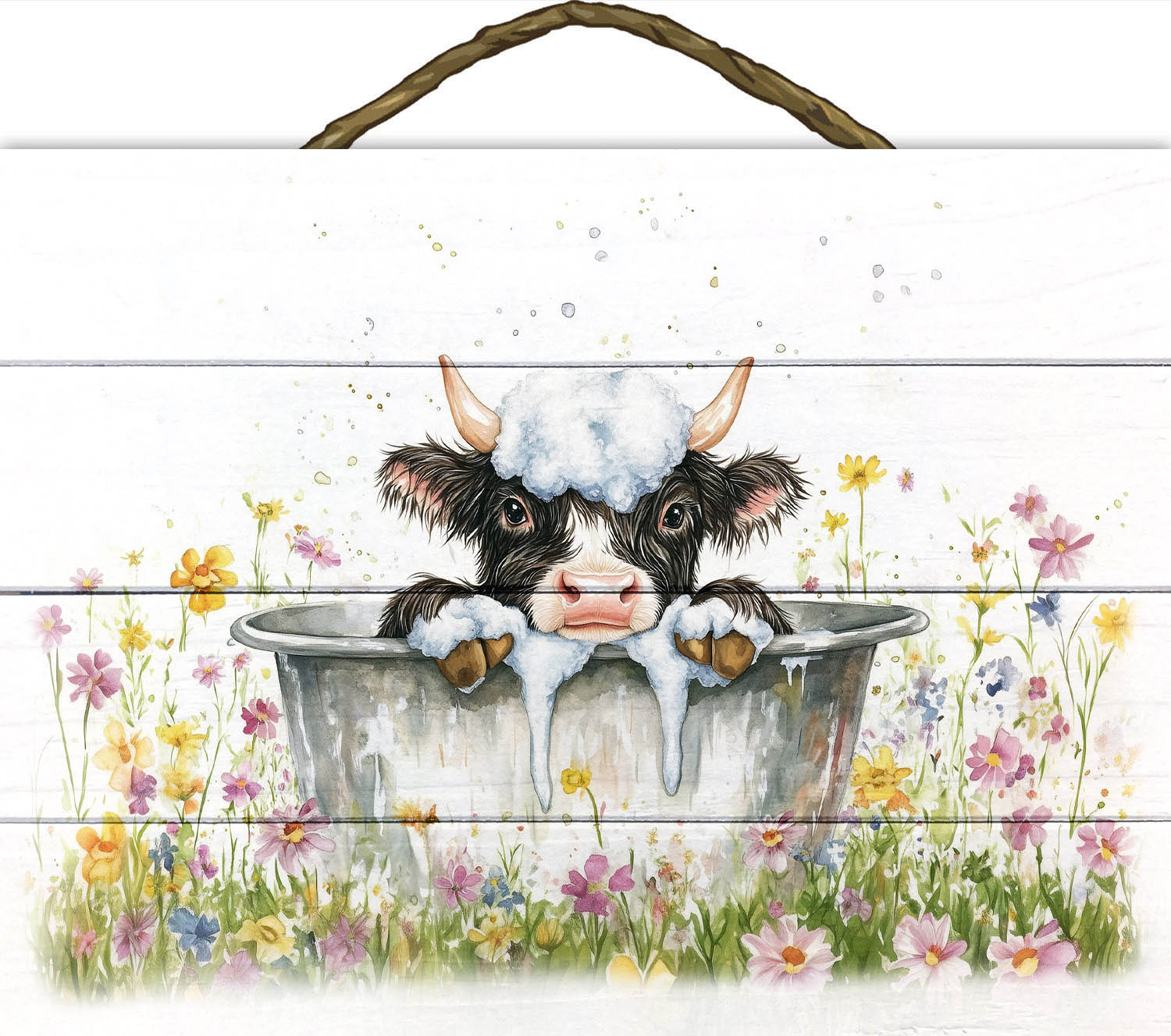 Black & White Calf Bathing Slat Sign
