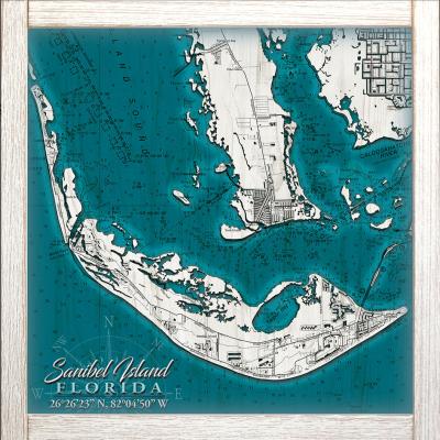 White tone Map Framed Wall Sign